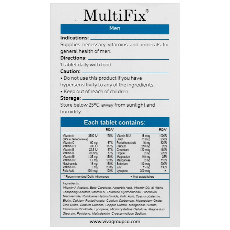 • مولتی‌فیکس آقایان ویتاویوا یک مولتی‌ویتامین و مینرال تخصصی برای مردان است.